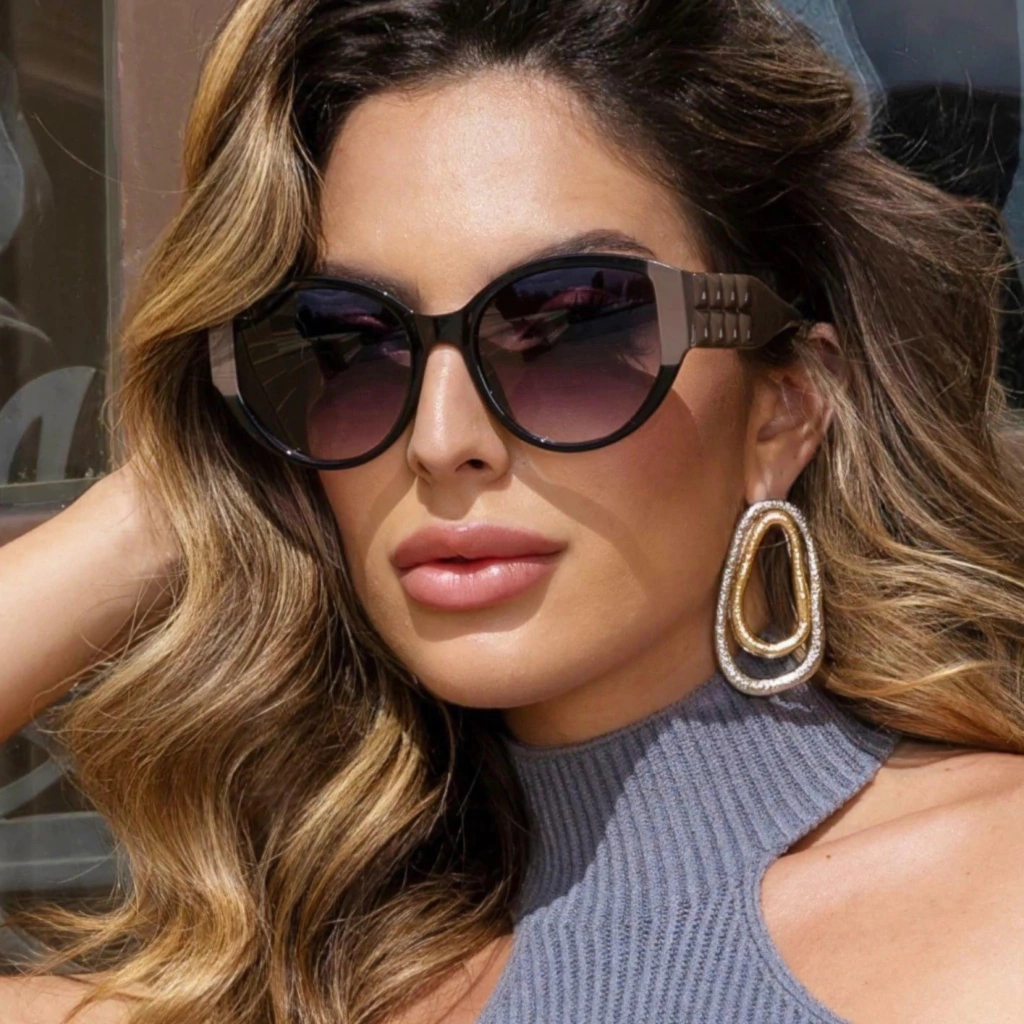 O Sebastian Couture é a peça que faltava para elevar o seu estilo a um nível de passarela. Este modelo oversized, com um suave formato "gatinho" arredondado, combina o mistério da frente em preto brilhante com a sofisticação das hastes em tom nude. O grande diferencial está no acabamento das hastes: uma textura geométrica em relevo (estilo matelassê) que confere um toque de exclusividade e requinte, transformando o óculos em uma verdadeira joia. Ideal para a mulher que valoriza detalhes únicos e um visual cosmopolita.
